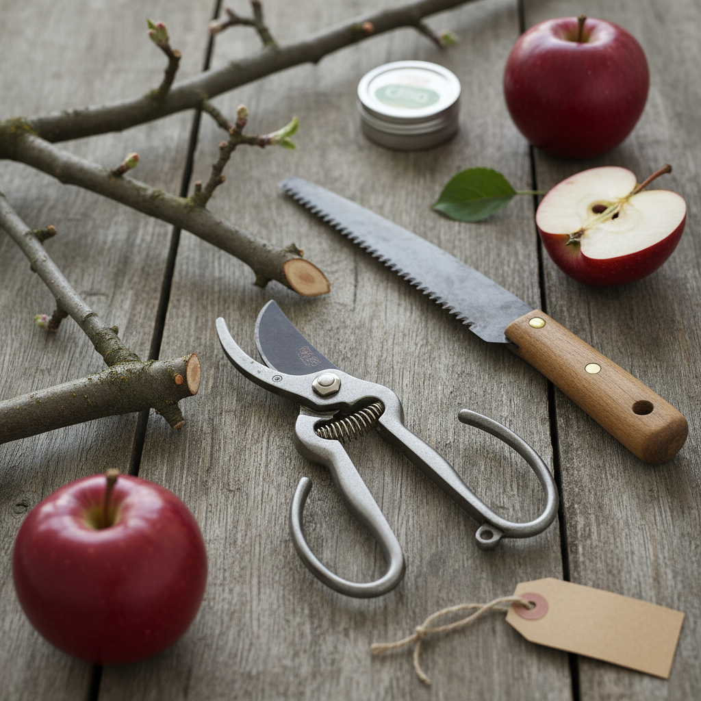 Pagrindinis sodininko įrankis yra sodo sekatorius. Jis skirtas nedidelėms, iki 2-3 centimetrų storio šakelėms kirpti. Storesnėms, iki 5 centimetrų šakoms, prireiks sodo žirklių ilgomis rankenomis, kurios leidžia pasiekti aukščiau esančias šakas ir suteikia didesnę kirpimo jėgą. Dar stambesnėms šakoms šalinti naudojamas specialus sodo pjūklelis. Jo dantukai yra pritaikyti gyvos medienos pjovimui – jie nekimba ir padaro lygų pjūvį. Po genėjimo procedūrų visus įrankius rekomenduojama kruopščiai nuvalyti ir dezinfekuoti, ypač perėjus nuo vieno medžio prie kito, kad būtų išvengta galimo ligų perdavimo tarp vaismedžių.